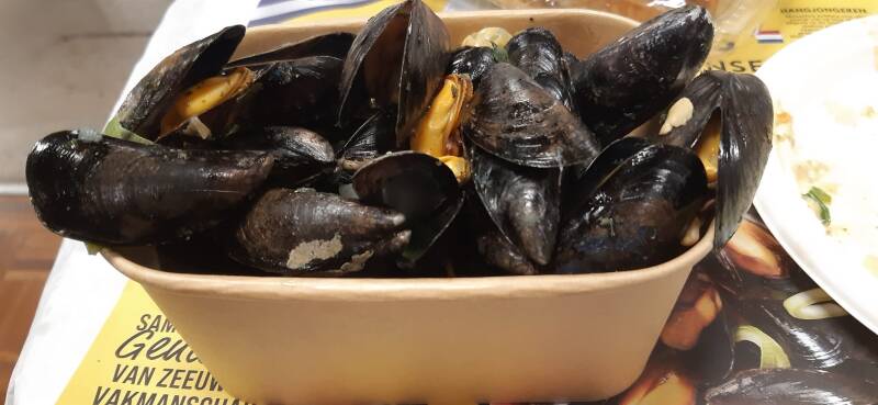Er waren genoeg mosselen voor iedereen , voor wie niet van mosselen houdt waren er slaatjes. De Zeeuwse bolussen waren er ook zoals elk jaar en zijn erg lekker. Hoe meer ze plakken hoe lekkerder ze zijn.